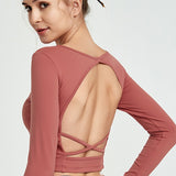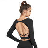This open back long sleeve crop top is made from a soft stretchy fabric that moves with you. The sexy open back design helps to keep you cool while adding a stylish twist. Available in multiple colors, its a must have for any workout wardrobe.