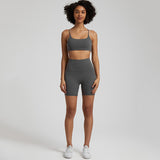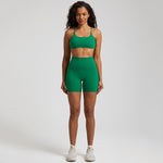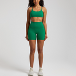 This high waist shorts and sports bra set comes in a variety of stylish colors and designs, making it easy to mix and match with your other workout clothes. The shorts and sports bra have a form-fitting design, providing a flattering and comfortable fit. The butt lifting feature of the shorts helps to accentuate your curves, making you feel confident and stylish.